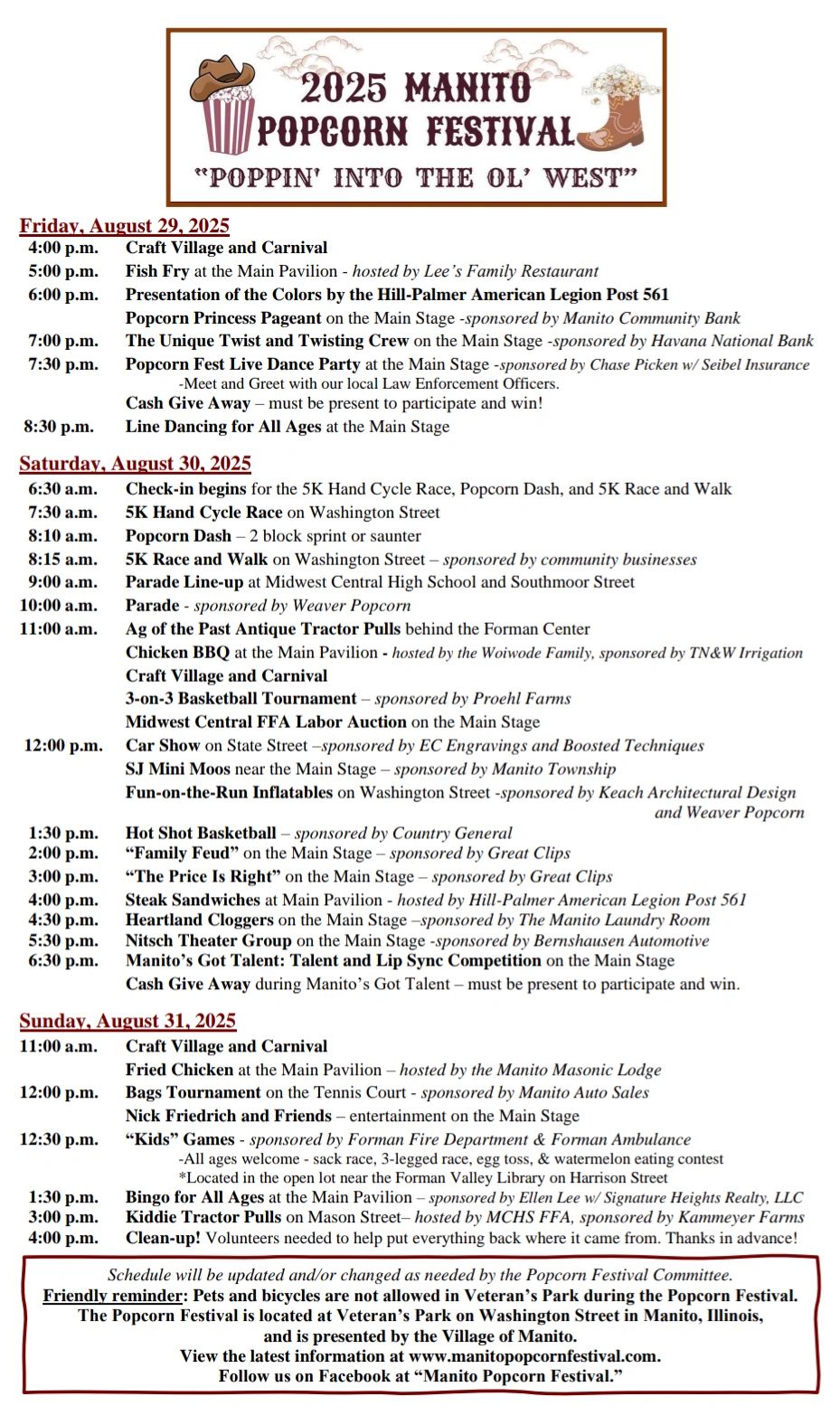 Manito Popcorn Festival "Poppin into the ol' west"Manito Popcorn Festival "Poppin into the ol' west"Manito Popcorn Festival "Poppin into the ol' west"